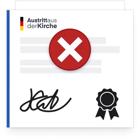 Hinweis: Wir sind ein privater Dienstleister, keine staatliche Behörde und auch keine gemeinnützige Organisation (NGO). Für den vollständigen Kirchenaustritt ist eine persönliche Abgabe beim zuständigen Amtsgericht oder eine notarielle Beglaubigung erforderlich. Je nach Region fallen zusätzliche Schritte und Kosten an, die nicht in unserer Servicepauschale enthalten sind. Sie haben auch die Möglichkeit, Ihren Auftrag kostenlos zu erstellen. Erkundigen Sie sich hierzu bei dem entsprechenden Amt.